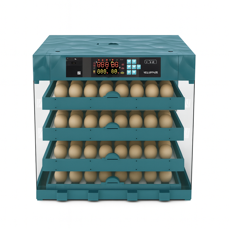 وصلتي لمرحلة كتحتاج فيها دفعة كبيرة مرة وحدة؟ فقاسة 260 بيضة بالنظام الألماني معمولة للإنتاج الشبه-مهني. عندها طبقات متعددة بتوزيع هواء متوازن وعزل حراري كيبقى ثابت حتى وهي معمّرة. المتحكم كينظّم الحرارة والرطوبة بدقة، والتقليب أوتوماتيك كل 120 دقيقة باش الأجنّة تتغذّى بالدفء بالتساوي وتطلع نسبة التفقيس مستقرة.